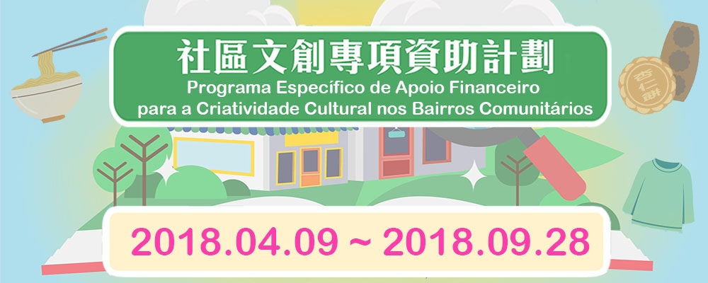 詳細內容請參閱:《社區文創專項資助計劃》,查詢方式:電話:2850 1000/傳真:2850 1010/電子郵件:info@fic.gov.mo。