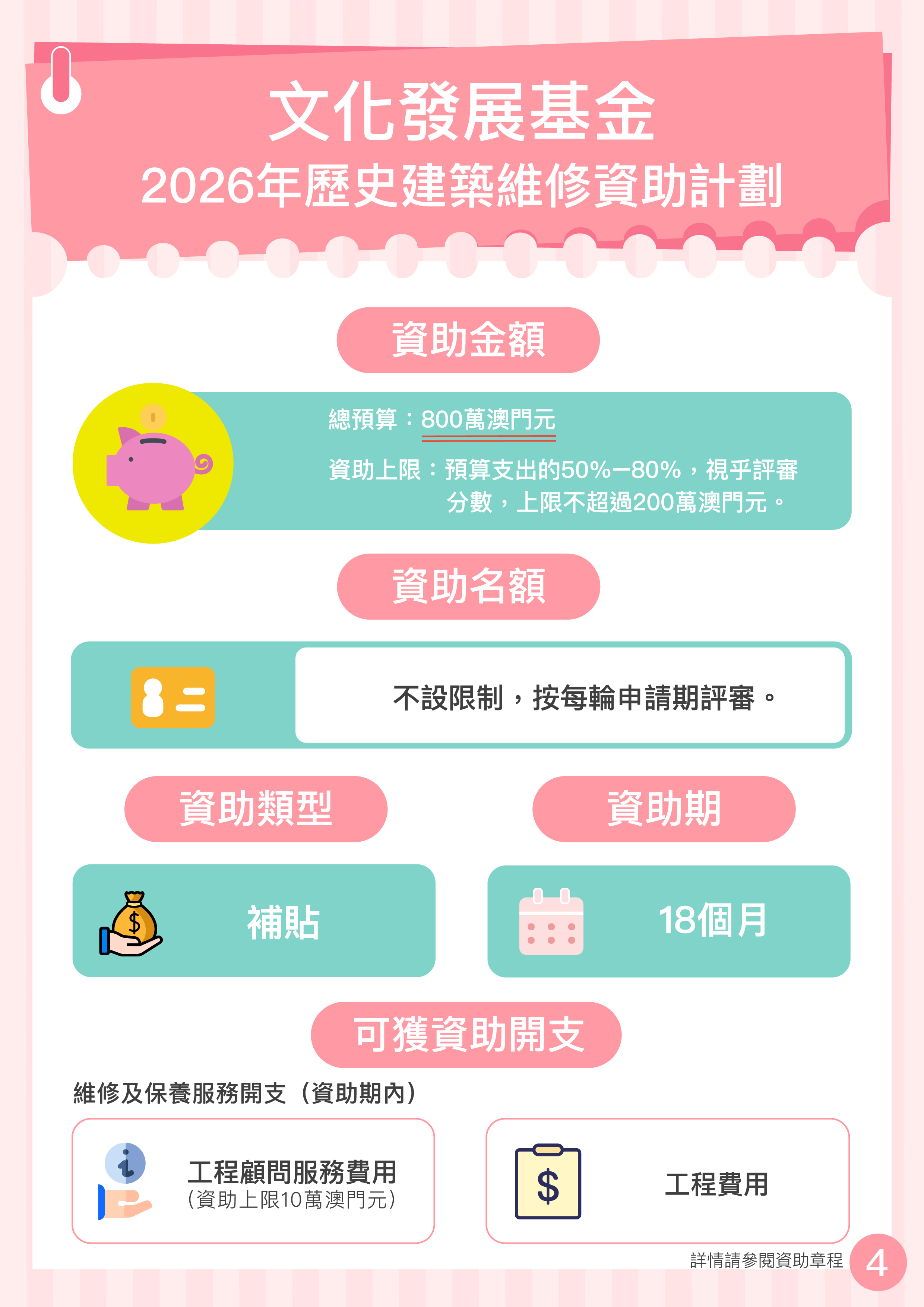 資助計劃總預算金額:800萬澳門元。 |